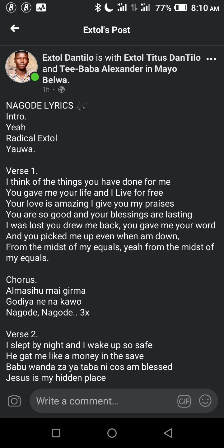 Extol Dantilo is looking forward to blessing souls with his talent, follow him on all his social media handles to be one of those souls.